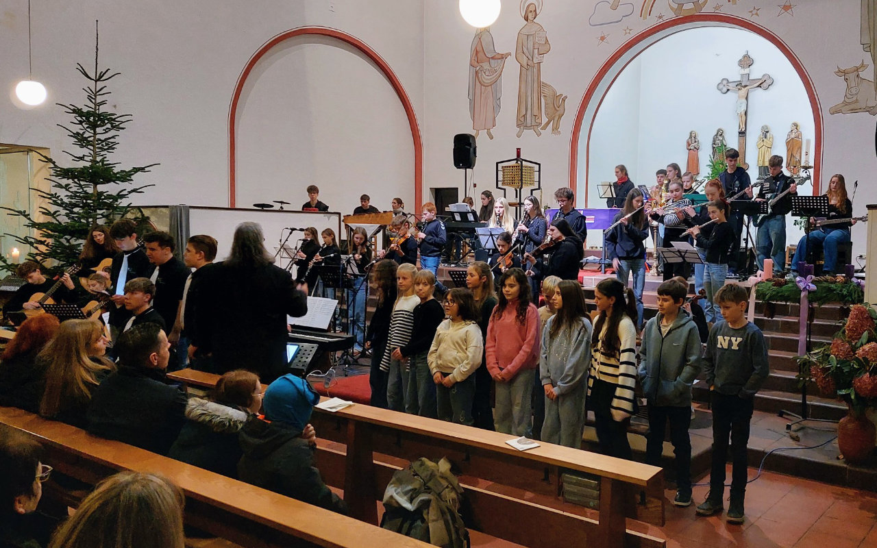 In der weihnachtlich geschmückten Kirche St. Maria-Magdalena fand kurz vor den Weihnachtsferien das traditionelle Adventskonzert des Peter-Wust-Gymnasiums statt. Zahlreiche Besucherinnen und Besucher folgten der Einladung und erlebten einen stimmungsvollen Abend mit musikalischer Vielfalt und weihnachtlicher Stimmung.