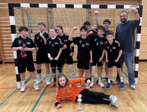 Alexander Leuck freute sich über einen historischen Turniertag und eine erneut bemerkenswerte Wettbewerb-Bilanz seiner Schule: „Drei Teams sind im Landesfinale gestartet, und jedes Mal konnten wir uns durchsetzen. Von sechs gemeldeten Teams standen vier im Landesfinale und drei haben den Titel gewonnen.“