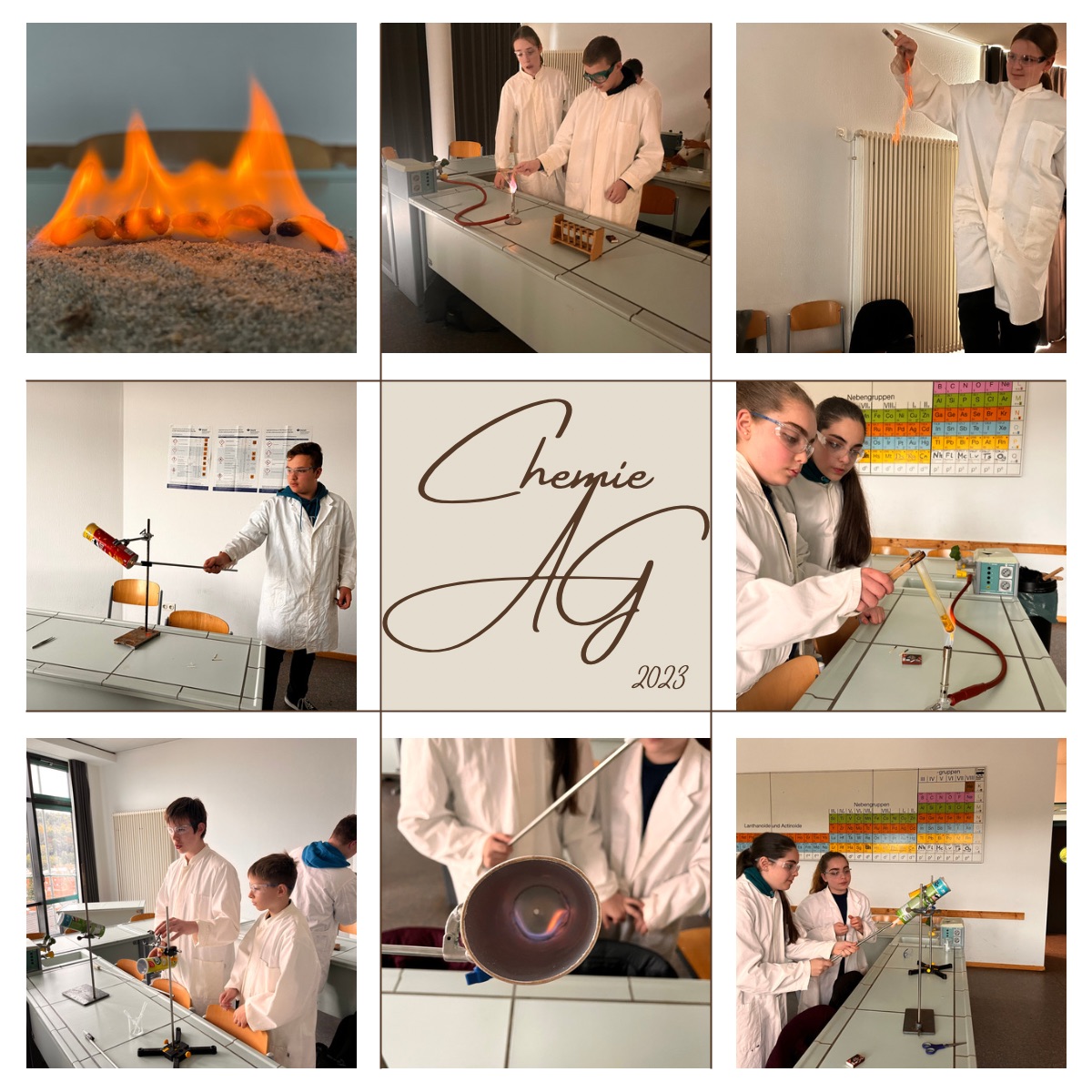 Du interessierst Dich für spannende chemische Experimente, die im Unterricht nicht durchgeführt werden? Dann bist du in der Chemie AG genau richtig. Wir bereiten Experimente vor, die spektakulär und explosiv sind und dich zum Staunen bringen. Am Abend der offenen Tür werden diese vor den Viertklässlern präsentiert und ihr demonstriert euer chemisches Können.
