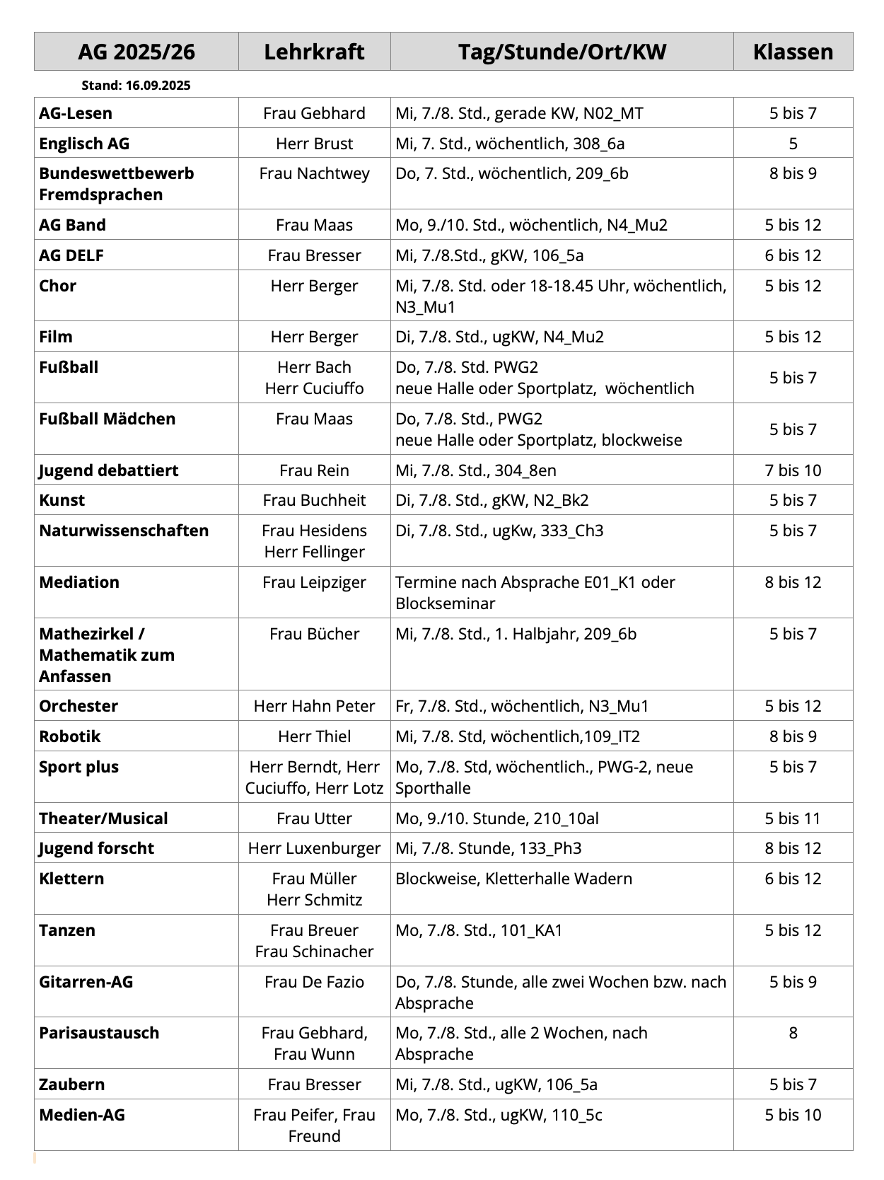 Ansprechlehrkraft: Herr Brust